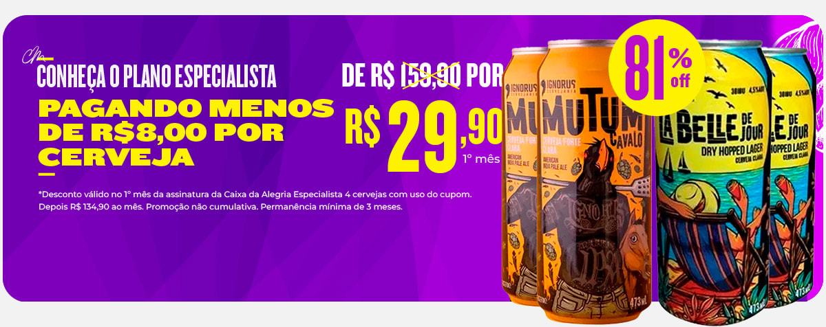 Automaticamente você passa a ser um assinante Beer Pack de recorrência mensal. Podendo solicitar o cancelamento conforme o item 14.